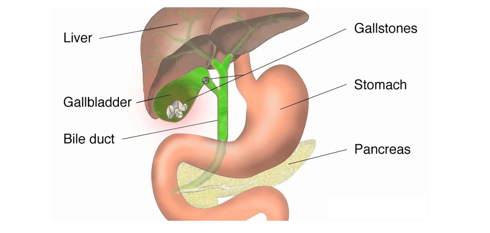 The gallbladder stores and releases bile which helps digest fats. Sometimes gallstones form in the gallbladder or bile ducts. Gallstones may cause pain.
